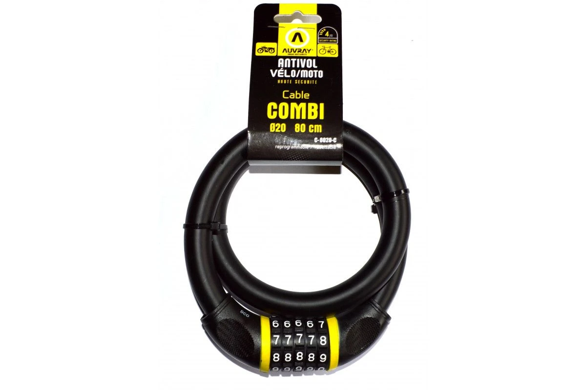 L’antivol spiral à code Auvray Combi 80 cm est un antivol à câble classique de 80cm.