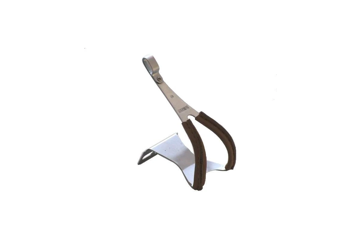Les cale-pieds en acier et cuir MKS Toe Clip NJS sont des cale-pieds classique en acier chromé avec une protection en cuir.