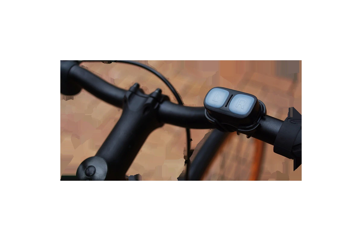 - 1 télécommande étanche à fixer sur le guidon (rechargeable USB) avec un bouton L (pour Left – Gauche) et un bouton R (pour Right – Droite)