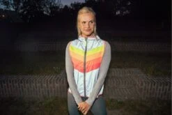 Il est équipé d’un feu à l’arrière (recharge via USB) et de sangles réfléchissantes pour une plus grande visibilité.