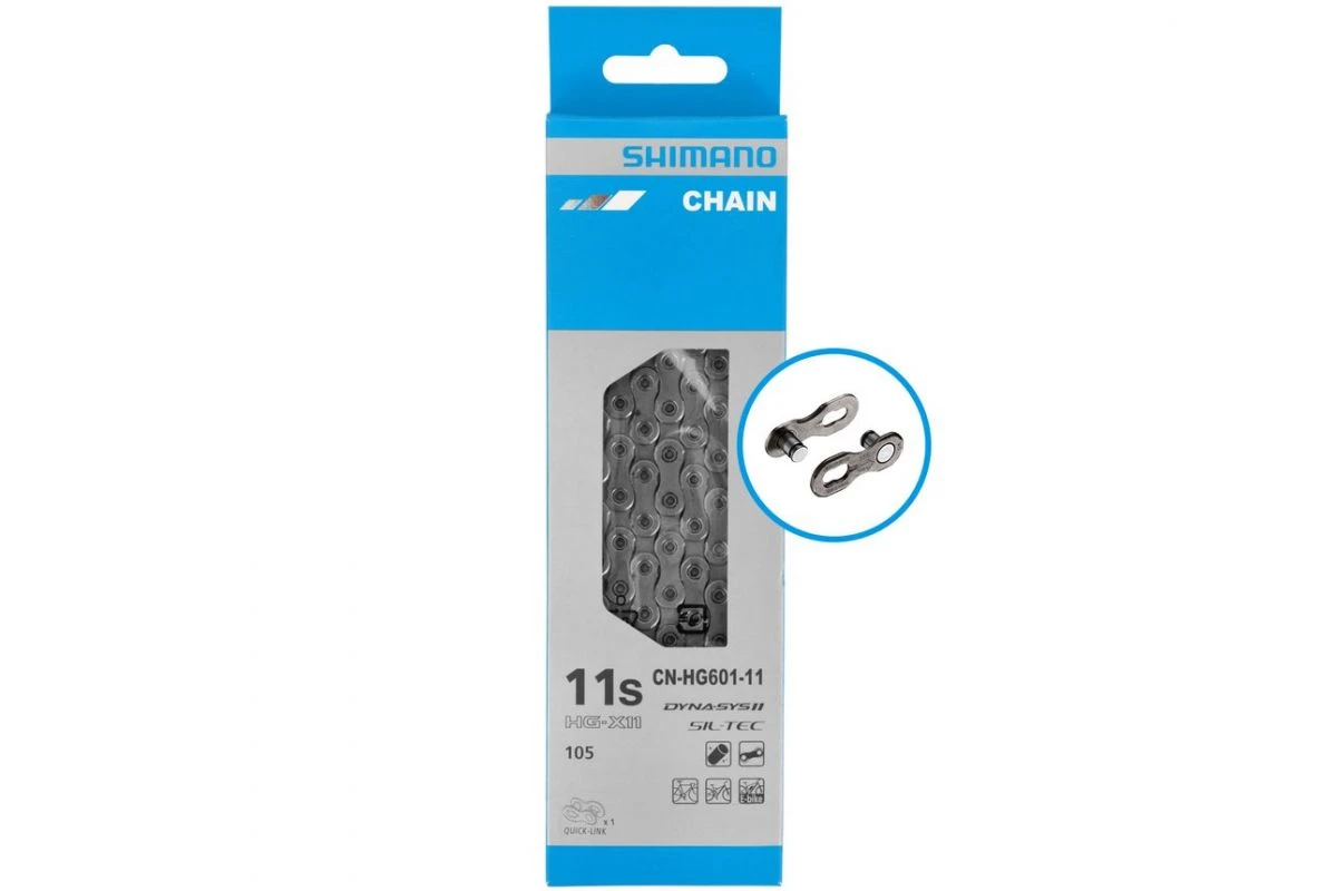 La chaîne pour vélo 11 vitesses Shimano CN HG-601 est une chaîne de vélo classique pour transmission 11 vitesses.