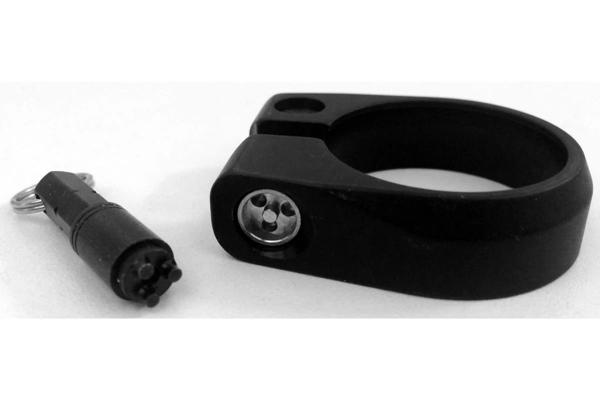 Ce kit comprend un collier de selle disponible en deux diamètres, une vis antivol et une clé codée spécifique.