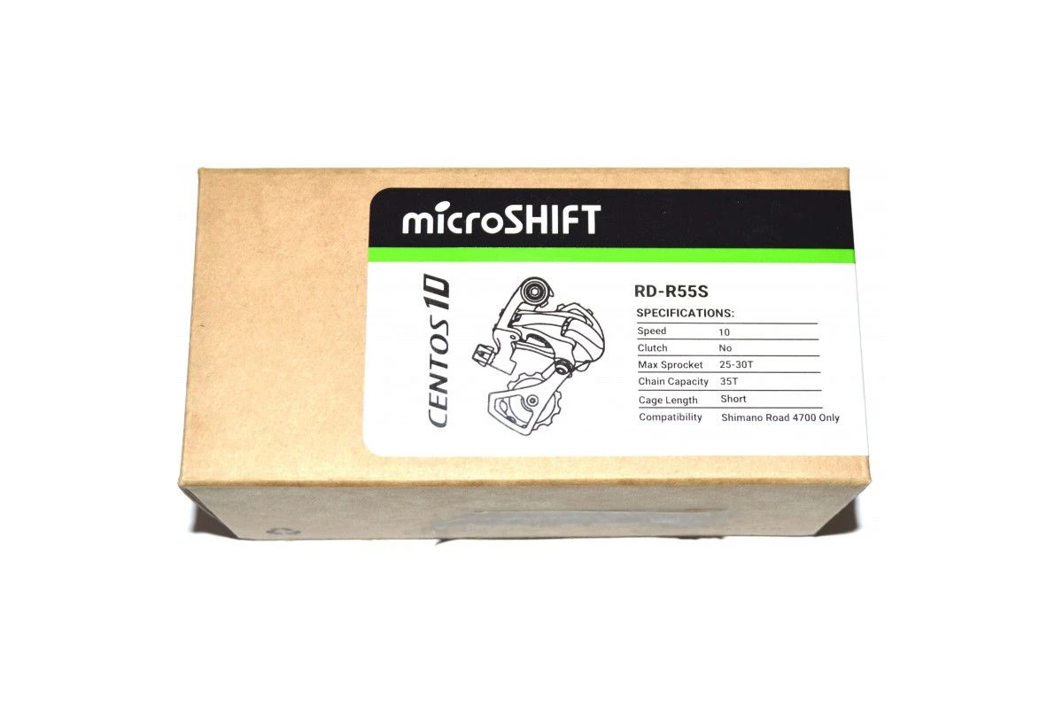 Le dérailleur arrière Microshift 10 vitesses petite chape DM 35T Centos est un dérailleur arrière route compatible avec les transmissions/cassettes 10 vitesses.