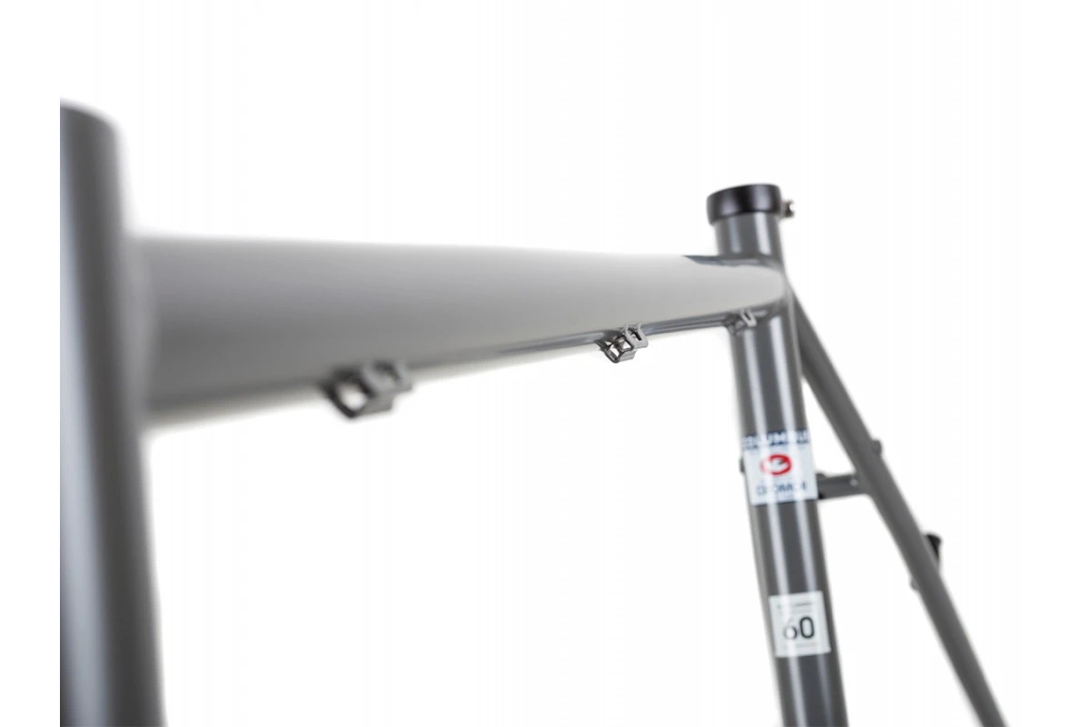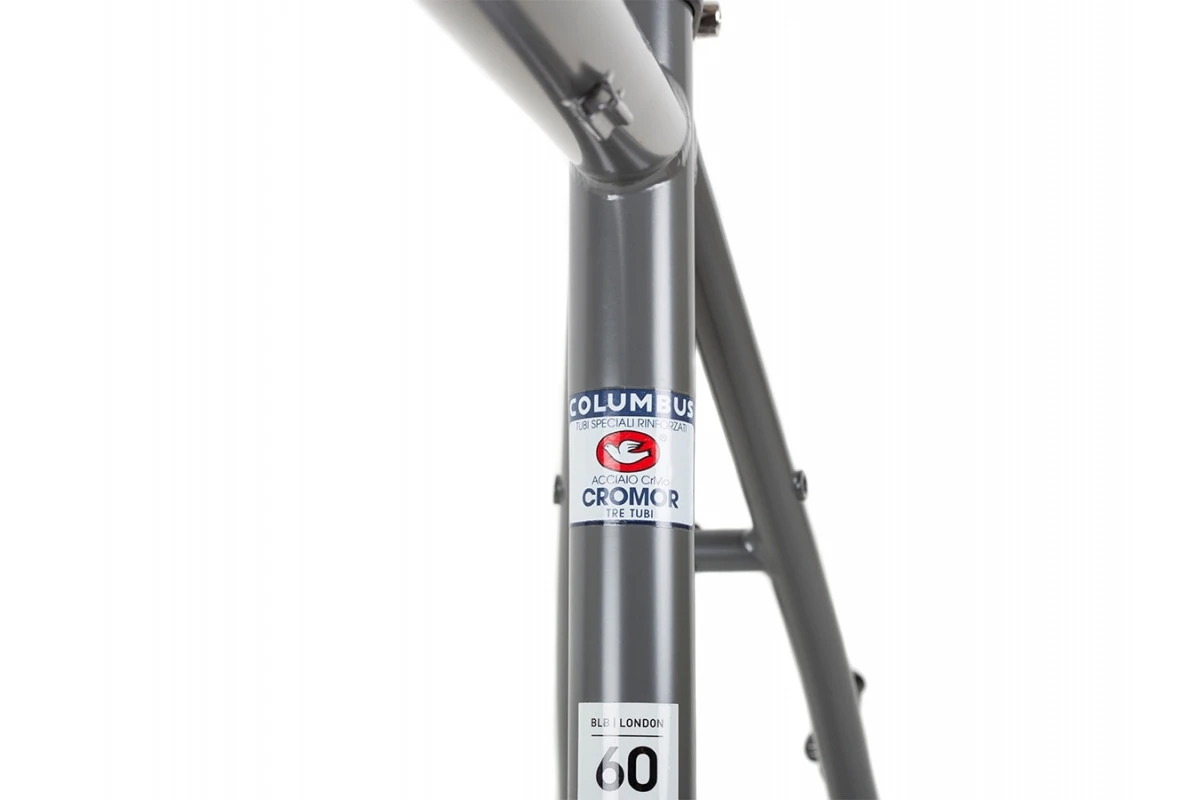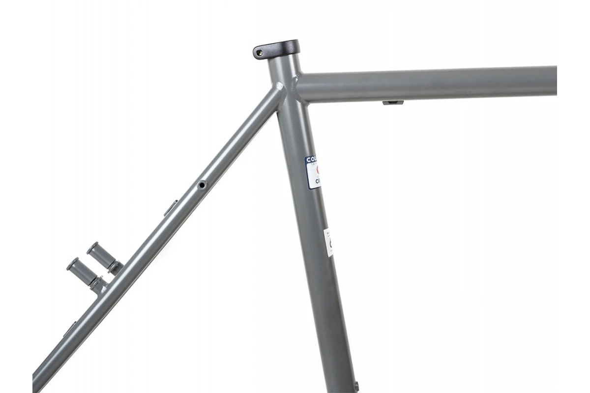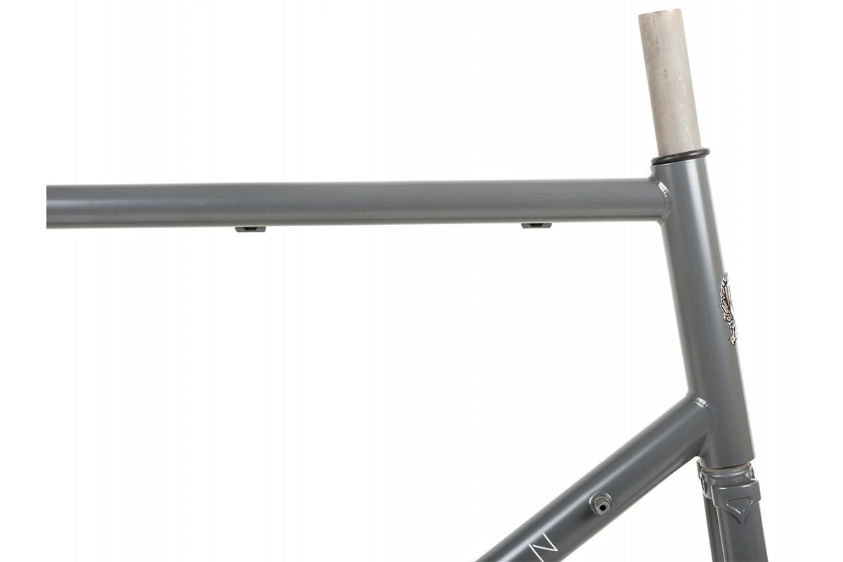 Tout d’abord, le solide cadre est constitué de tubes d’acier Columbus Cromor, un alliage réputé pour sa tenue dans le temps grâce à la présence de chrome et de molybdène. La géométrie employée, avec un top tube légèrement sloping permet une conduite naturelle et confortable avec un poste de pilotage légèrement surélevé.