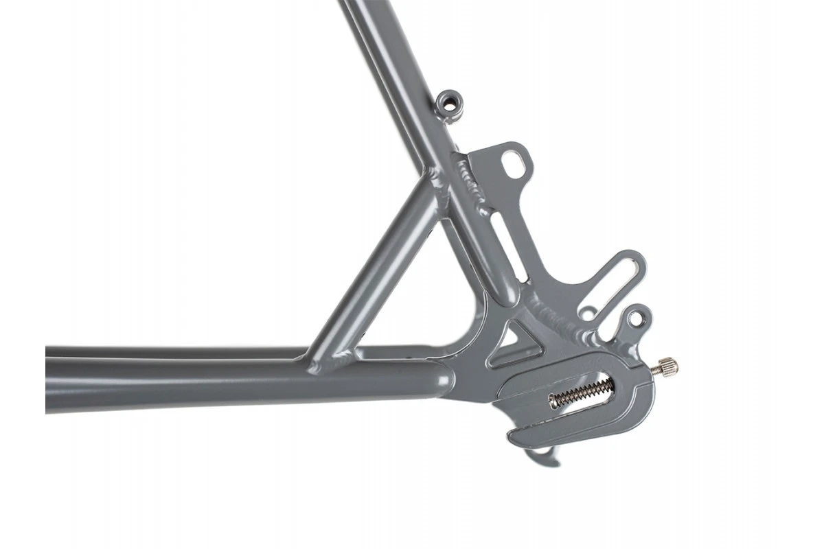 Les pattes arrières semi horizontales accepteront une configuration monovitesse / fixe ou bien une configuration à vitesses grâce à la patte de dérailleur intégrée.