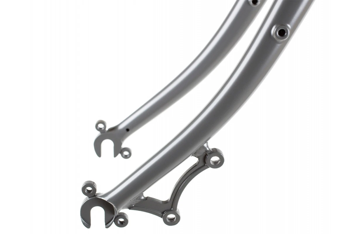 En ce qui concerne le freinage, des ergots démontables sont installés afin de permettre le montage de freins Cantilever.