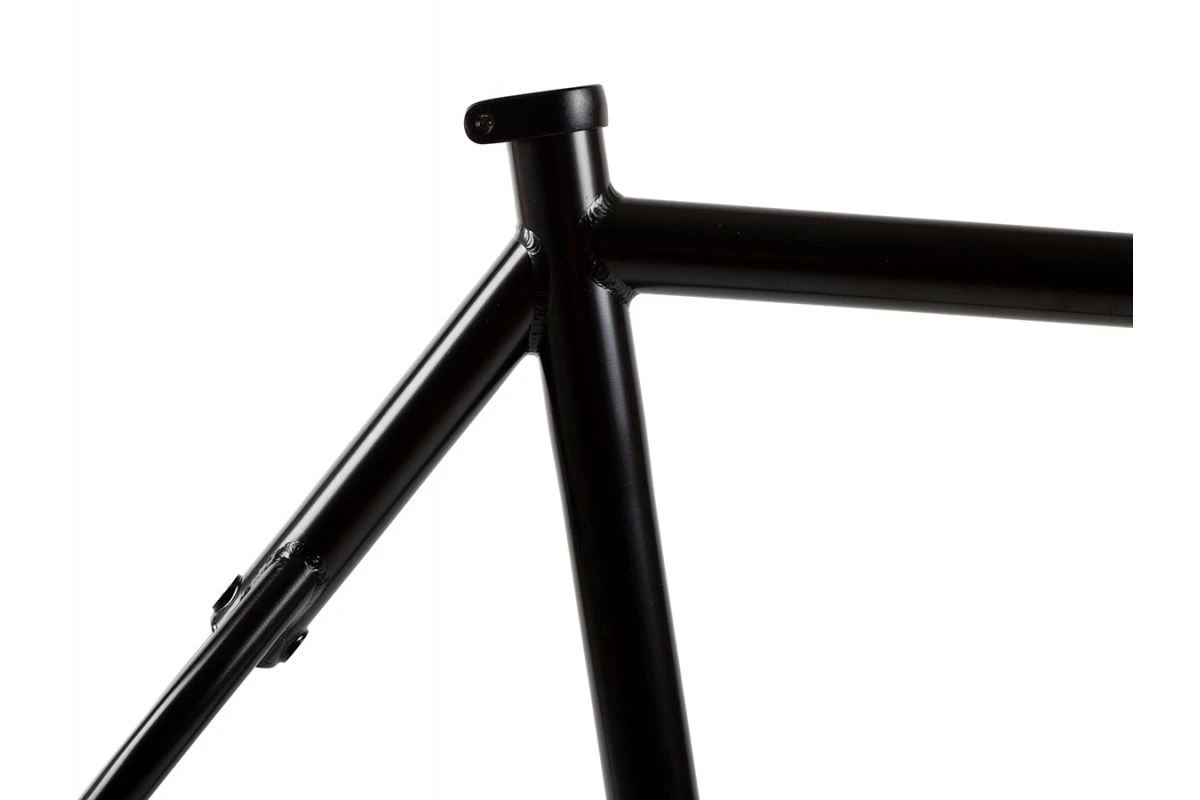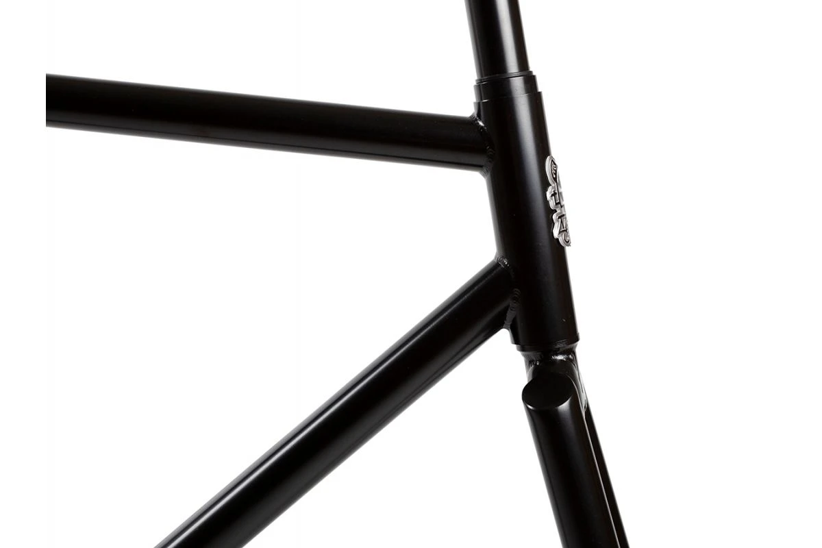 C’est un cadre Tracklocross, donc avec une géométrie de Fixie SingleSpeed classique mais avec une fourche et des bases élargies pour permettre le montage de pneus plus larges (40c).