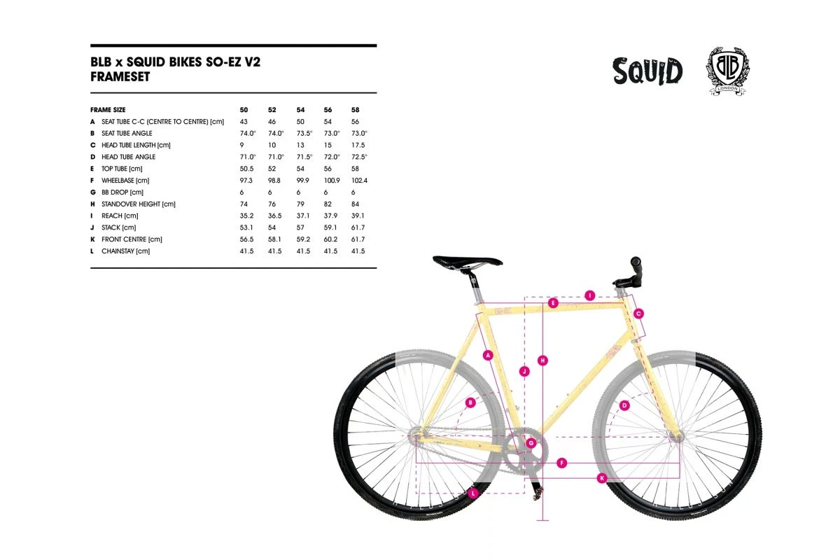 Spécifications détaillées du kit cadre Tracklocross BLB X Squid Bikes SO-EZ :