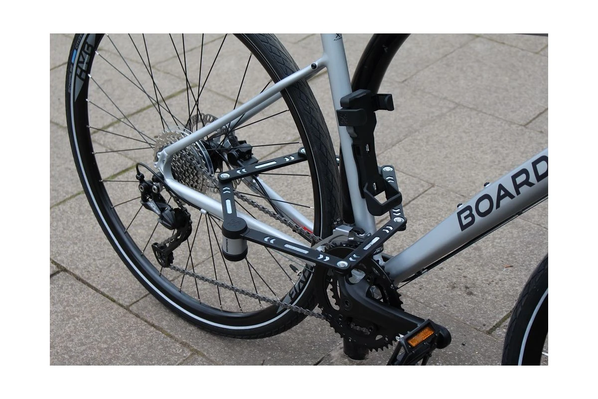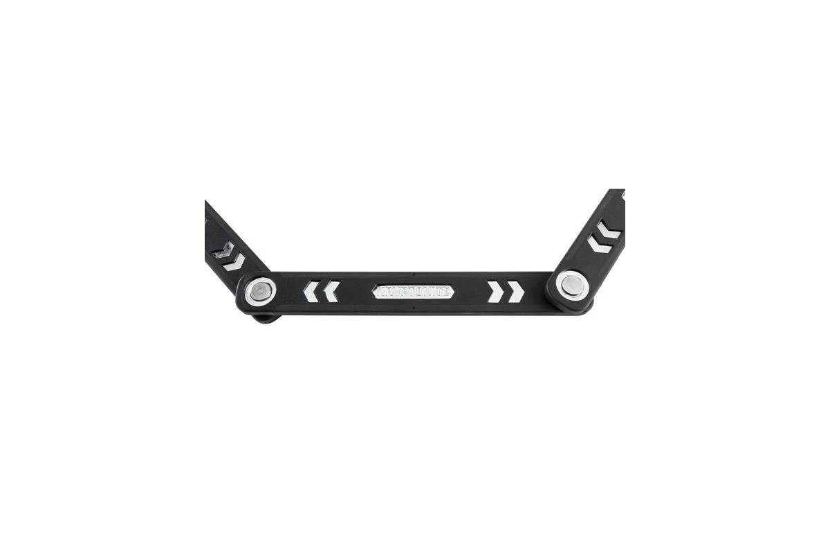 Mesurant 1 mètre, l’antivol est constitué de 6 barres en acier trempé de 5 mm qui sont raccordées par 5 articulations, fortes mais flexibles, pour très bien résister.