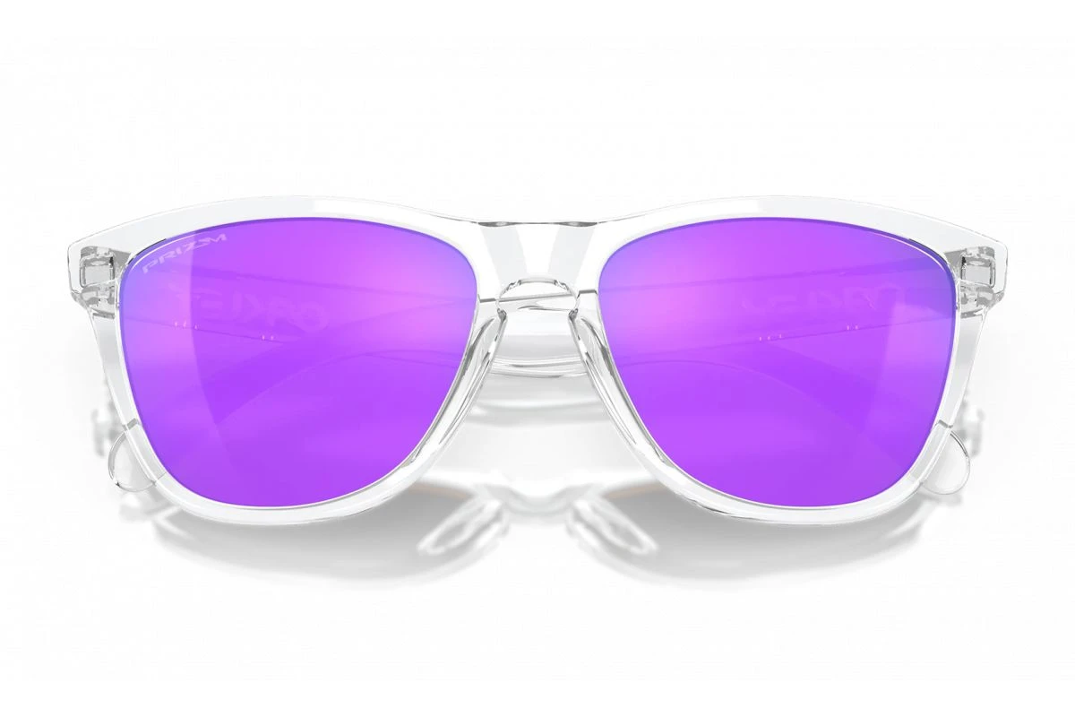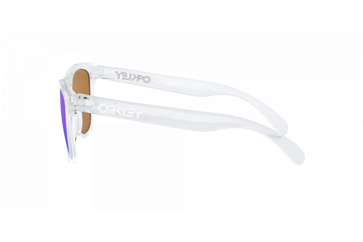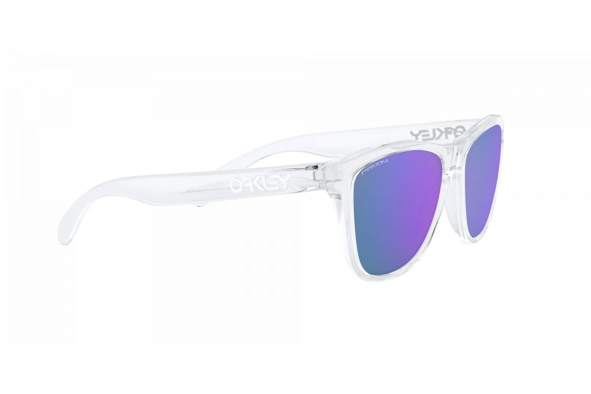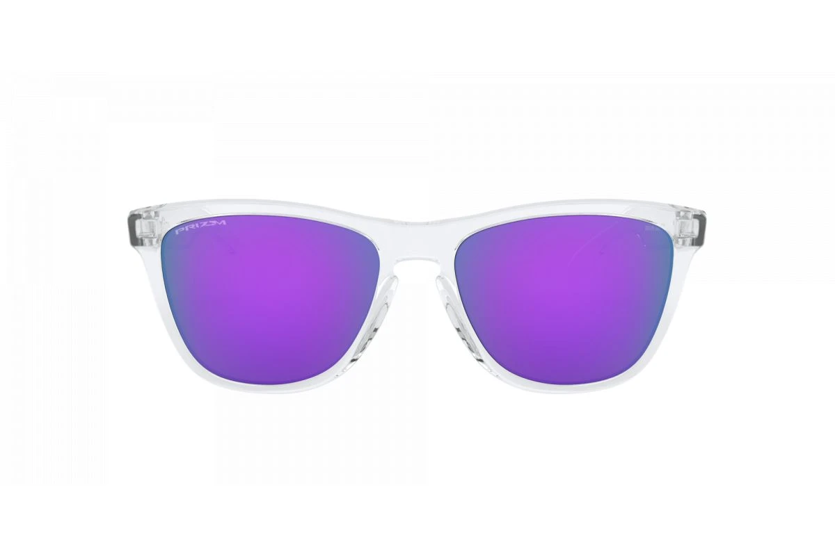 La paire de lunettes de soleil Lifestyle Oakley Frogskins monture Polished Clear / verre Prizm Violet / ajustement Standard est disponible ici dans sa toute dernière version 2022.