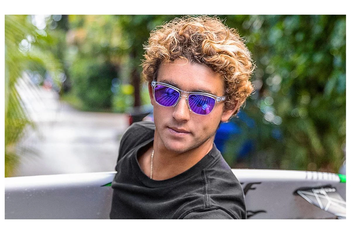 Les lunettes Frogskins présentées ici sont sur une finition de monture Polished Clear, conçues avec le matériau O Matter breveté par la marque, elles seront robustes, confortables et légères.