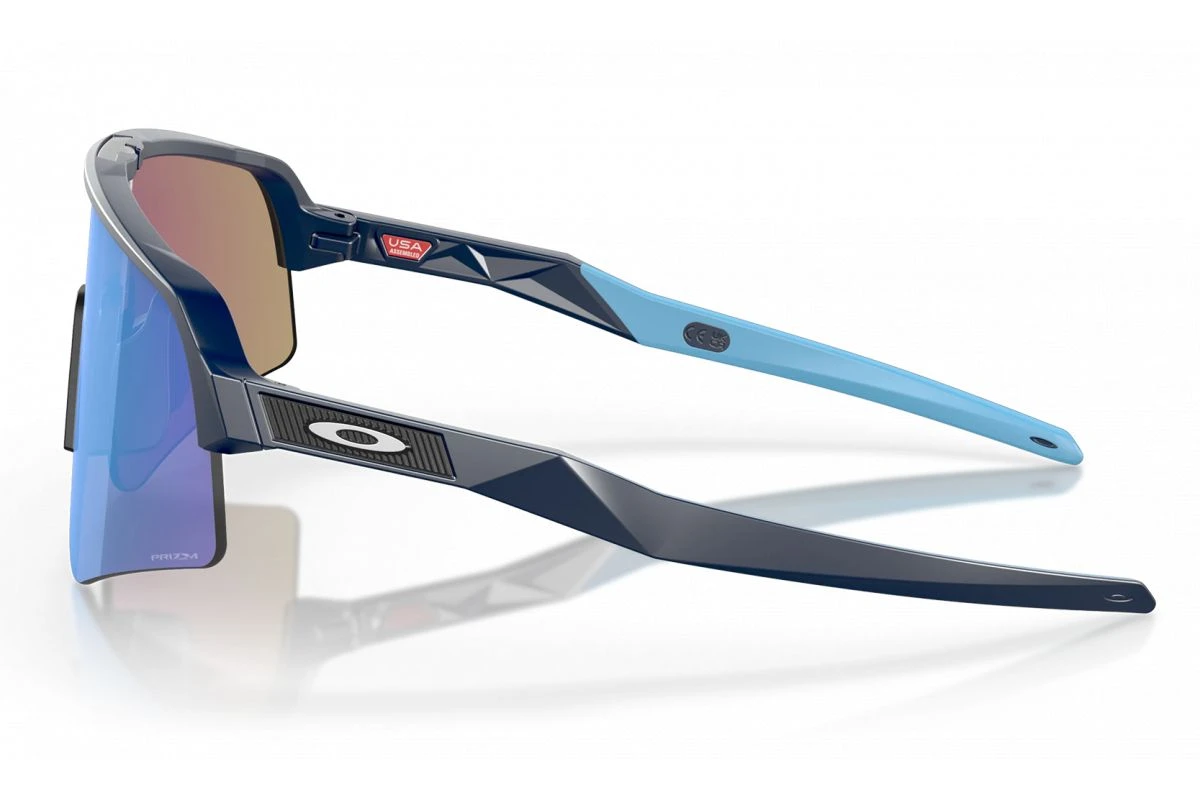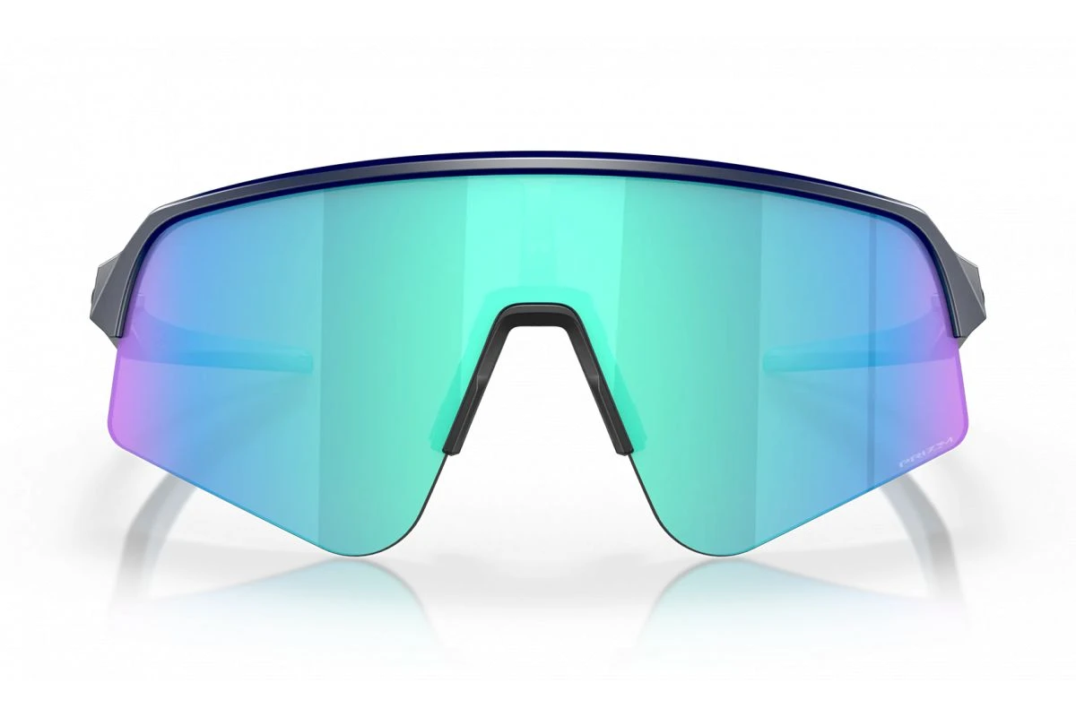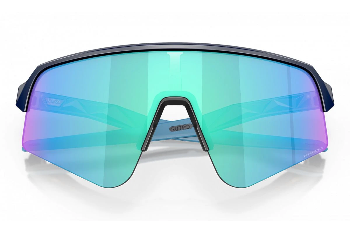 Présentées ici dans la finition Matte Navy, les lunettes Oakley Sutro Lite Sweep sont équipées de verres munis de la technologie Prizm Sapphire, permettant d’optimiser contrastes et couleurs afin de faire ressortir un maximum de détails.