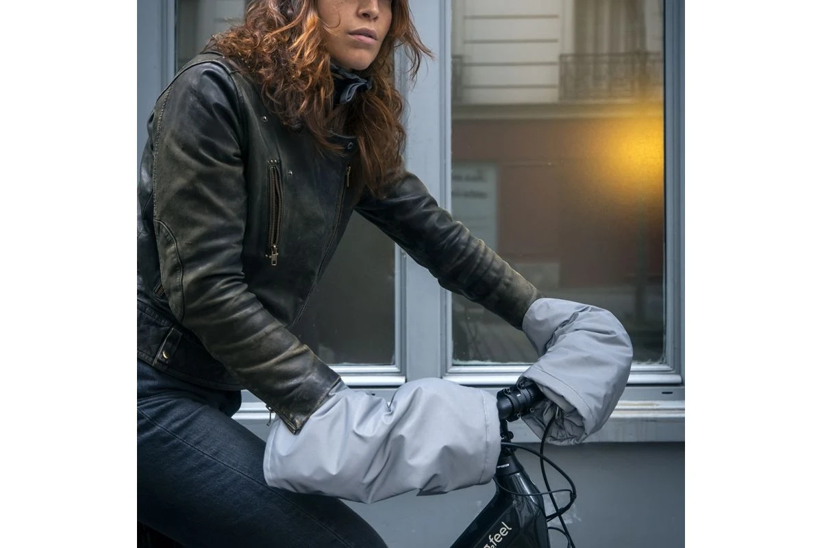 Vous en avez marre d’avoir froid aux doigts et vous n’aimez pas porter de gants ? Essayez les manchons réfléchissants pour vélo Rainette.