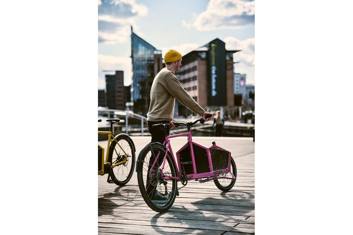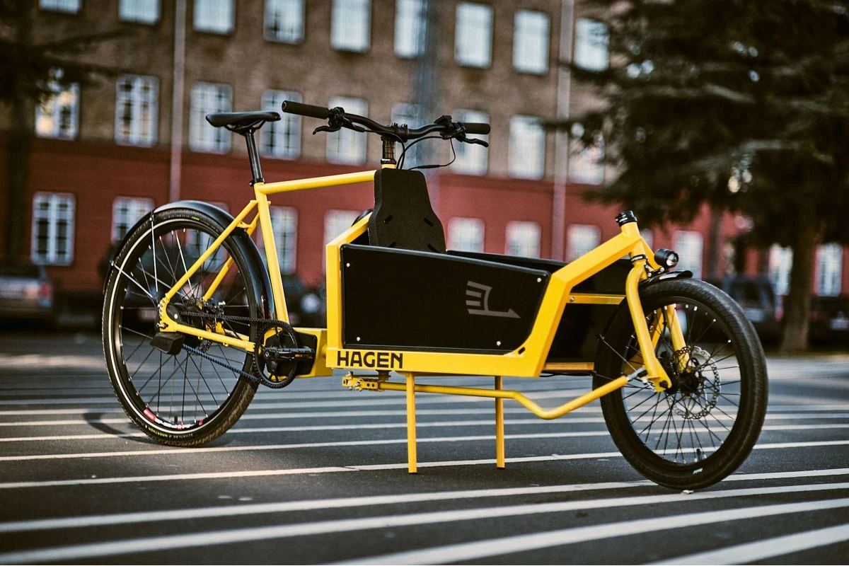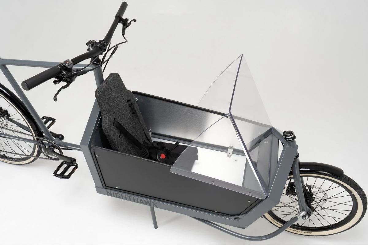 Vélo cargo Hagen Bikes Flagship e-Cargo équipé d’un siège optionnel