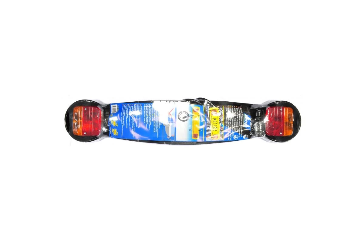 La plaque se branche sur la prise de l’attelage tandis que le support s’accroche aux vélos grâce à des sangles.