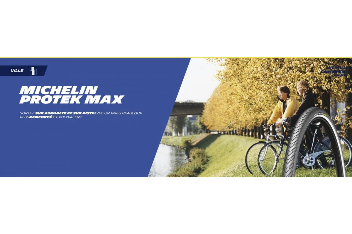 Au catalogue du manufacturier clermontois, le pneu renforcé Michelin Protek Max 700 x 35c est le pneu qui offre le maximum de protection contre les crevaisons.
