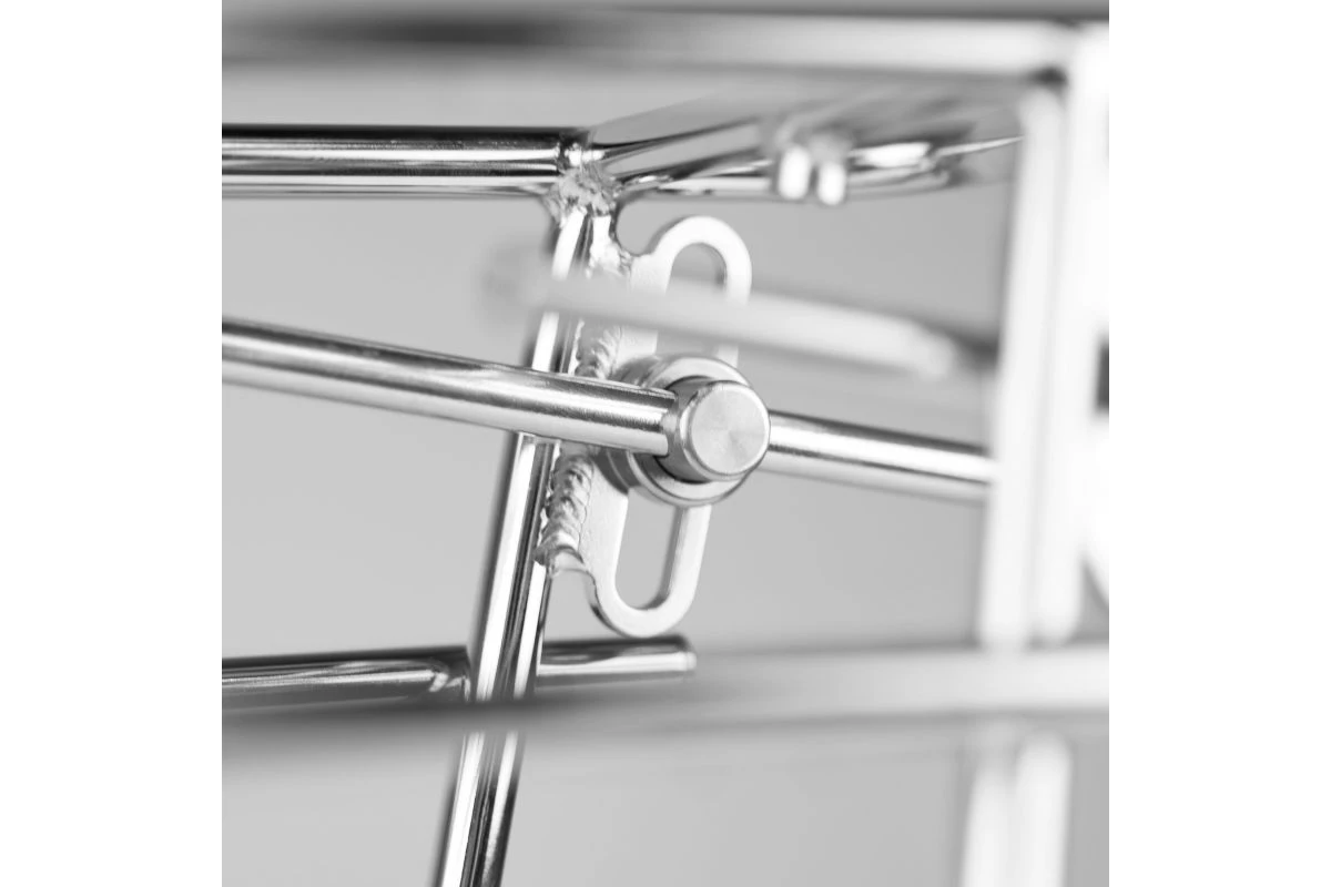 Il présente une conception entièrement tubulaire en acier inoxydable avec un pont supérieur et un système de rail inférieur.