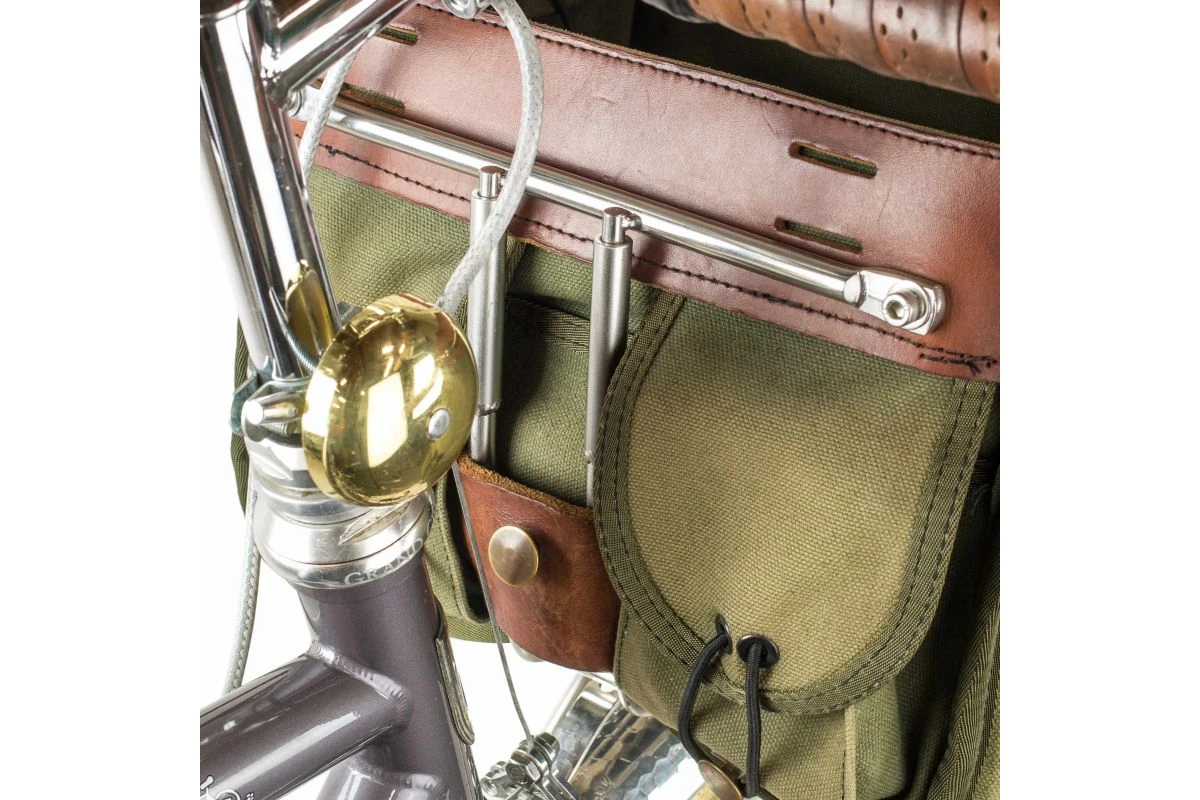 Le port-bagages avant Vélo Orange Randonneur avec décaleur intégré est parfait pour une sacoche de guidon ou une petite sacoche avant.