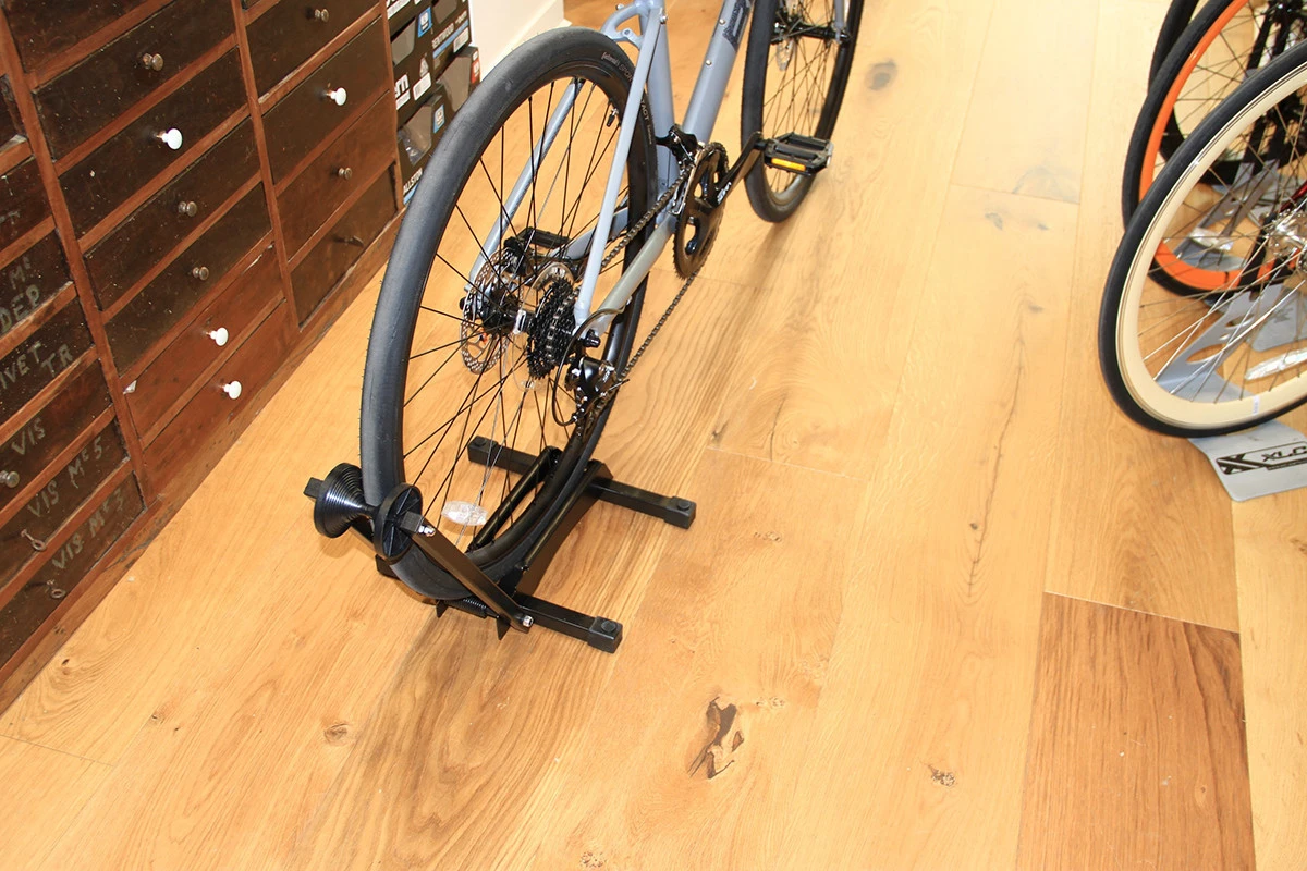 Un porte vélo bien pratique, qui permet de maintenir tous types de roues et de pneus, du vélo de route au VTT de descente.