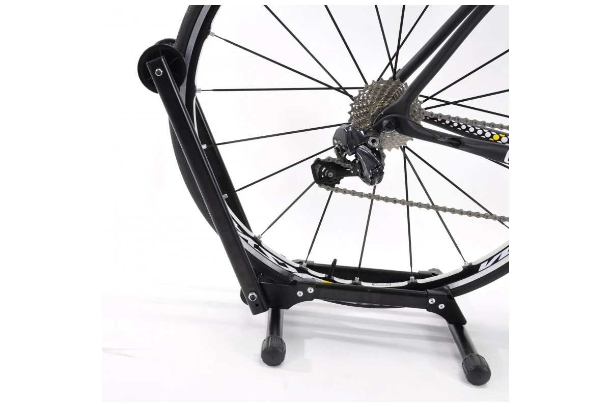 Ne venant pas toucher au moyeu arrière il permettra de maintenir des vélos munis d’un freinage à disques sans problème.