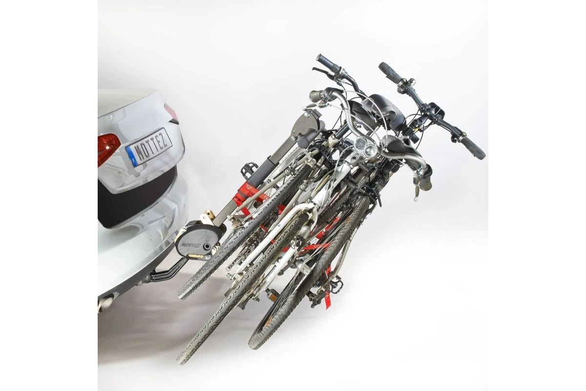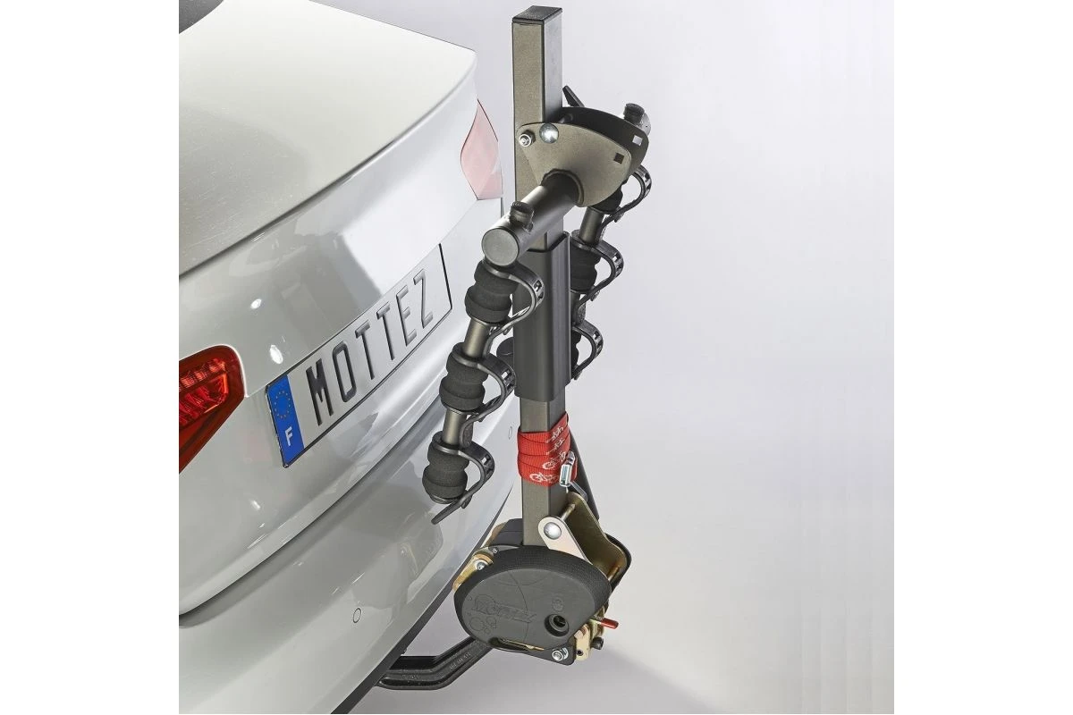 Le porte-vélo sur attelage Mottez 3 vélos permet de transporter jusqu’à 3 vélos en fixation sur la boule d’attelage de voiture.