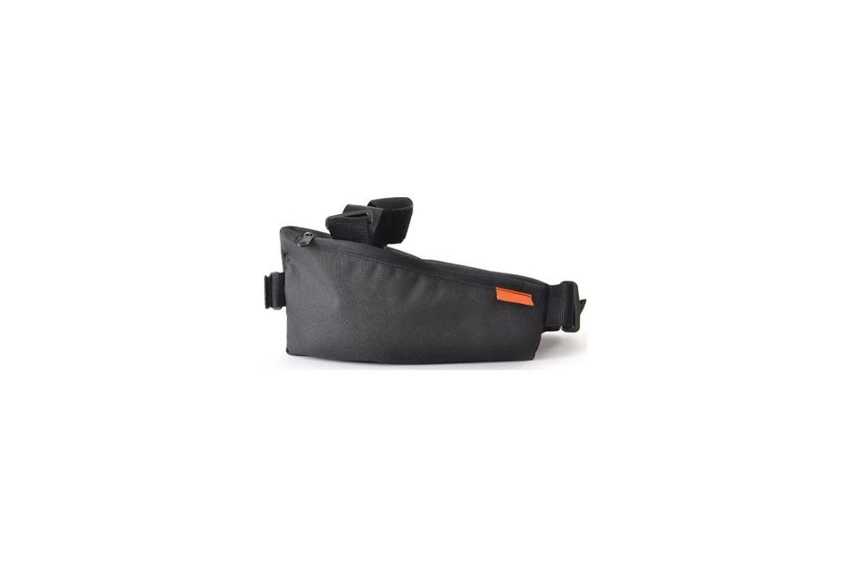 La sacoche de cadre O2feel s’installe rapidement entre la roue arrière et le tube de selle grâce à ses scratchs.