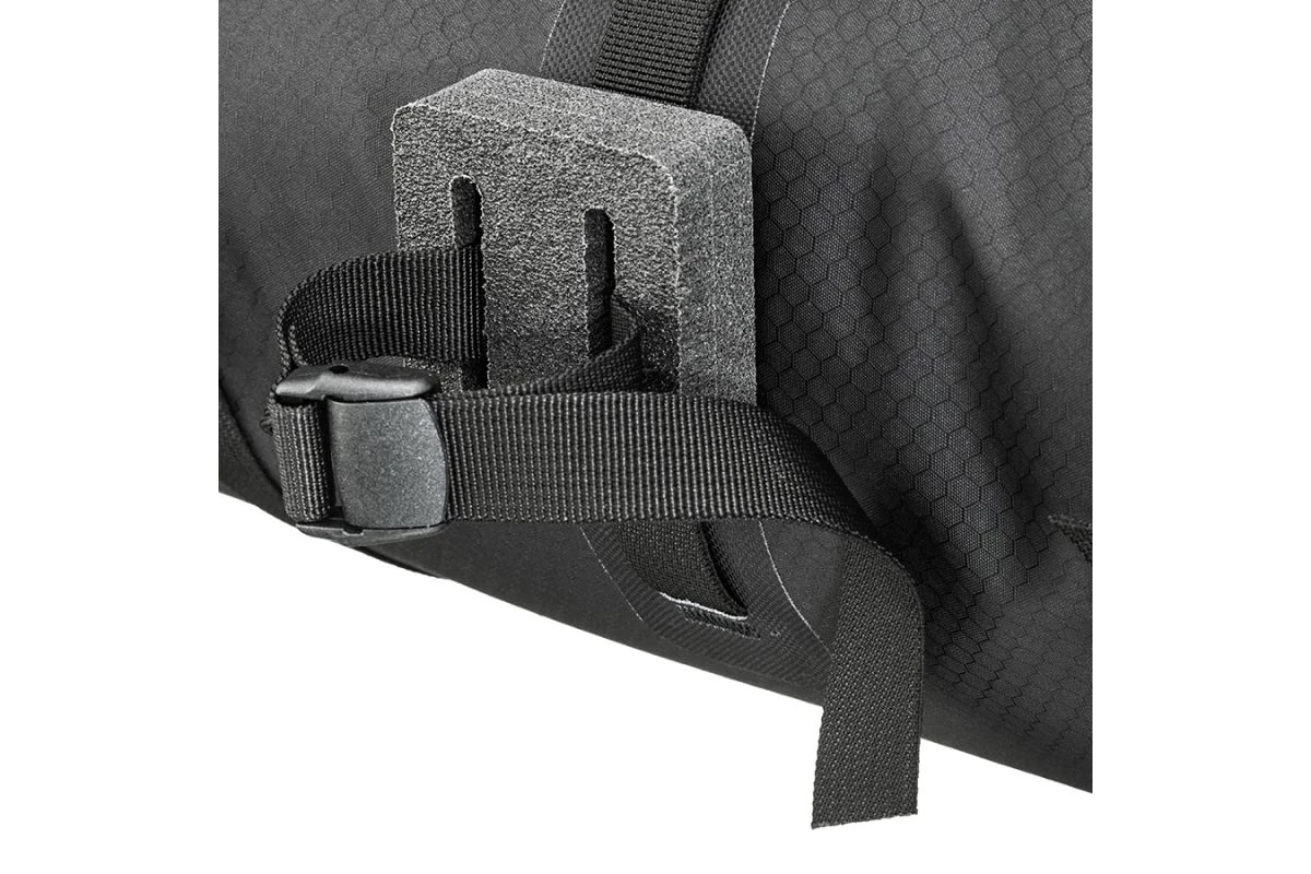 L’installation se fera très simplement grâce à deux sangles velcro sur la partie haute du guidon ainsi qu’une sangle fixée sur le tube de direction. Des entretoises en mousse sont prévues pour bien ajuster la sacoche, qui peut être installée sur n’importe quel cintre route, y compris les modèles en carbone.