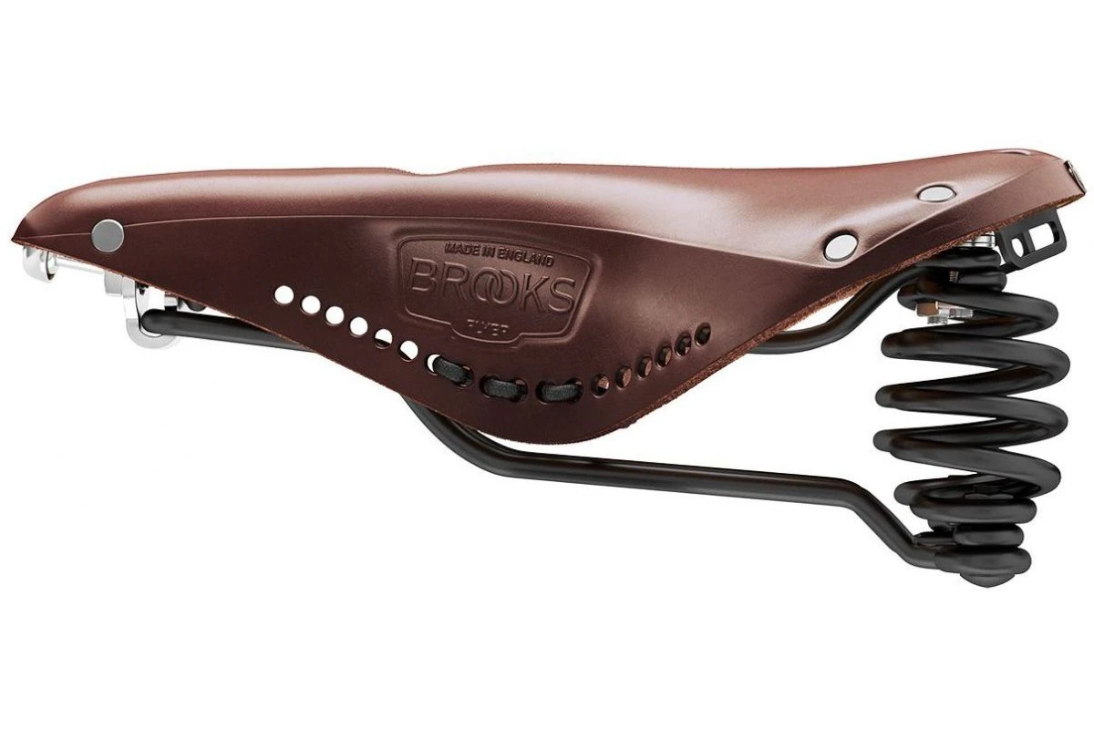 La selle Brooks Flyer Imperial Carved possède l’assise de la B17 avec deux ressorts amortisseurs pour plus de confort.