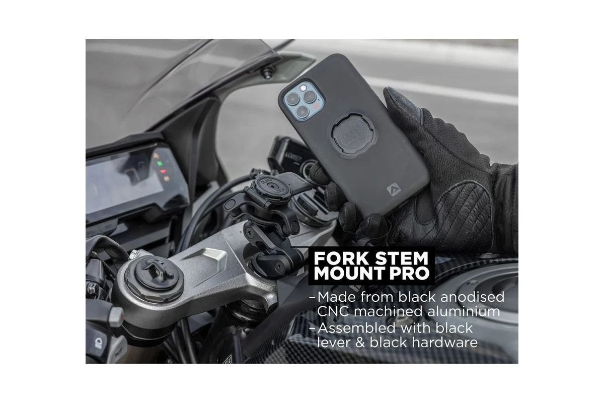 Spécifications détaillées de la fixation moto Quad Lock Fork Stem Mount Pro :
