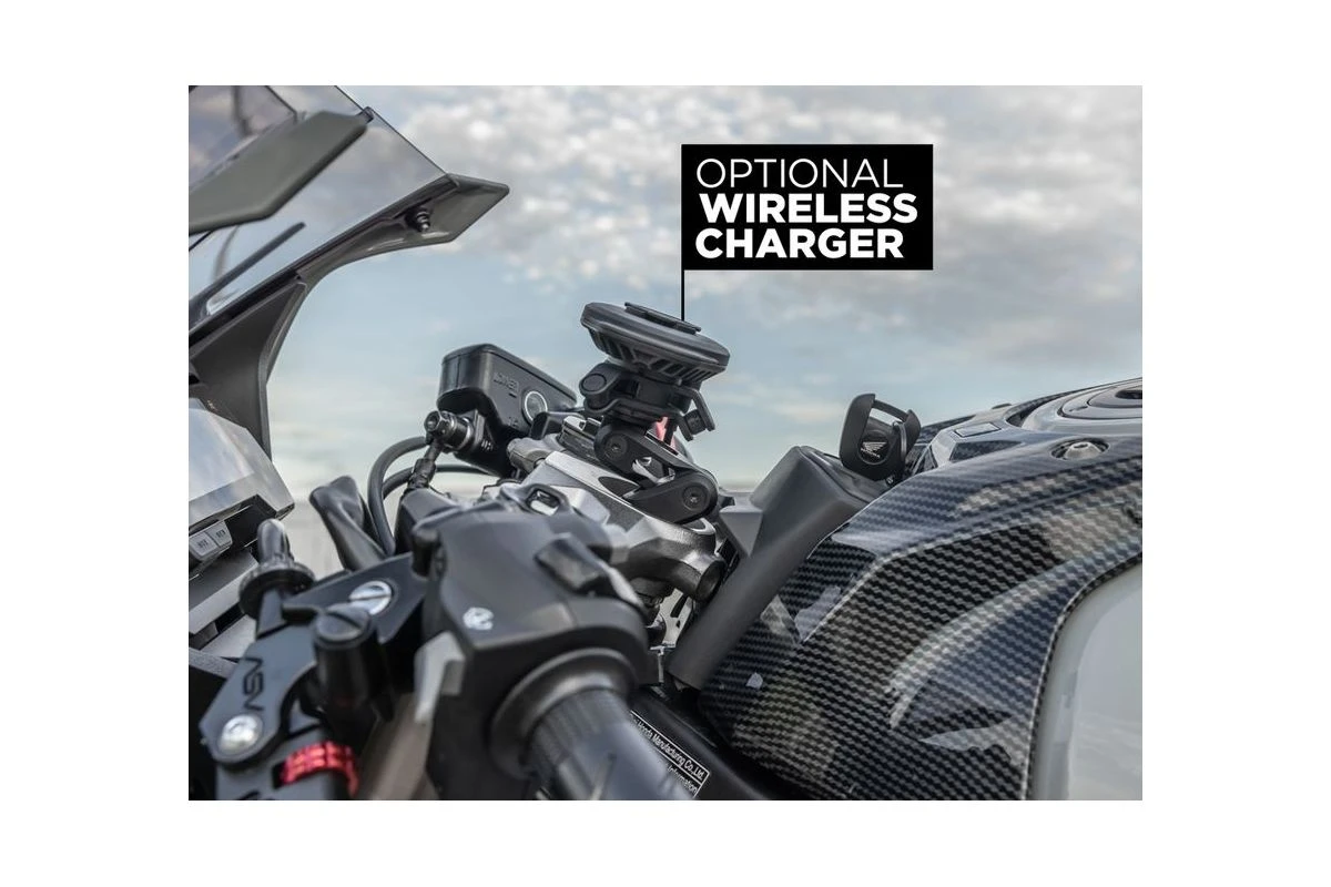 Enfin, en option, si vous arsouillez un peu sur des routes secondaires ou si vous roulez dans les chemins, nous vous recommandons de vous équiper du réducteur de vibrations Quad Lock afin de préserver votre smartphone des secousses.