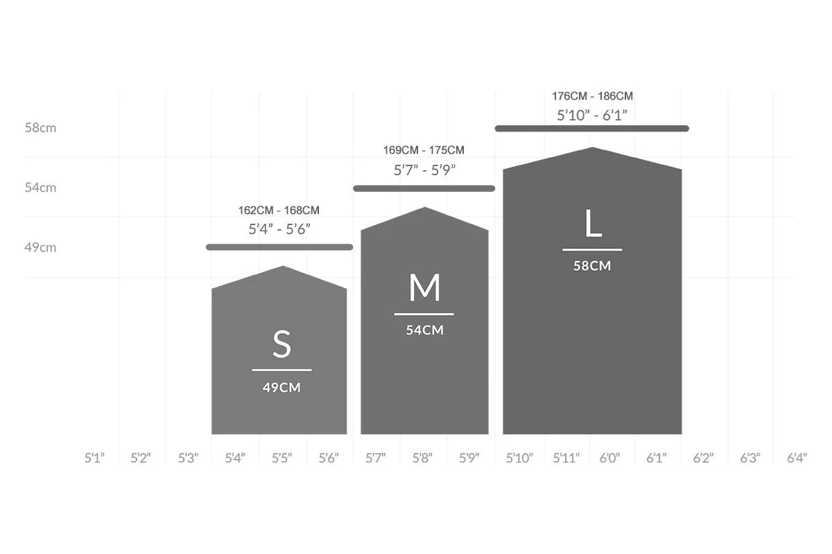 - Taille Small (49 cm) : de 1,60 m à 1,68 m