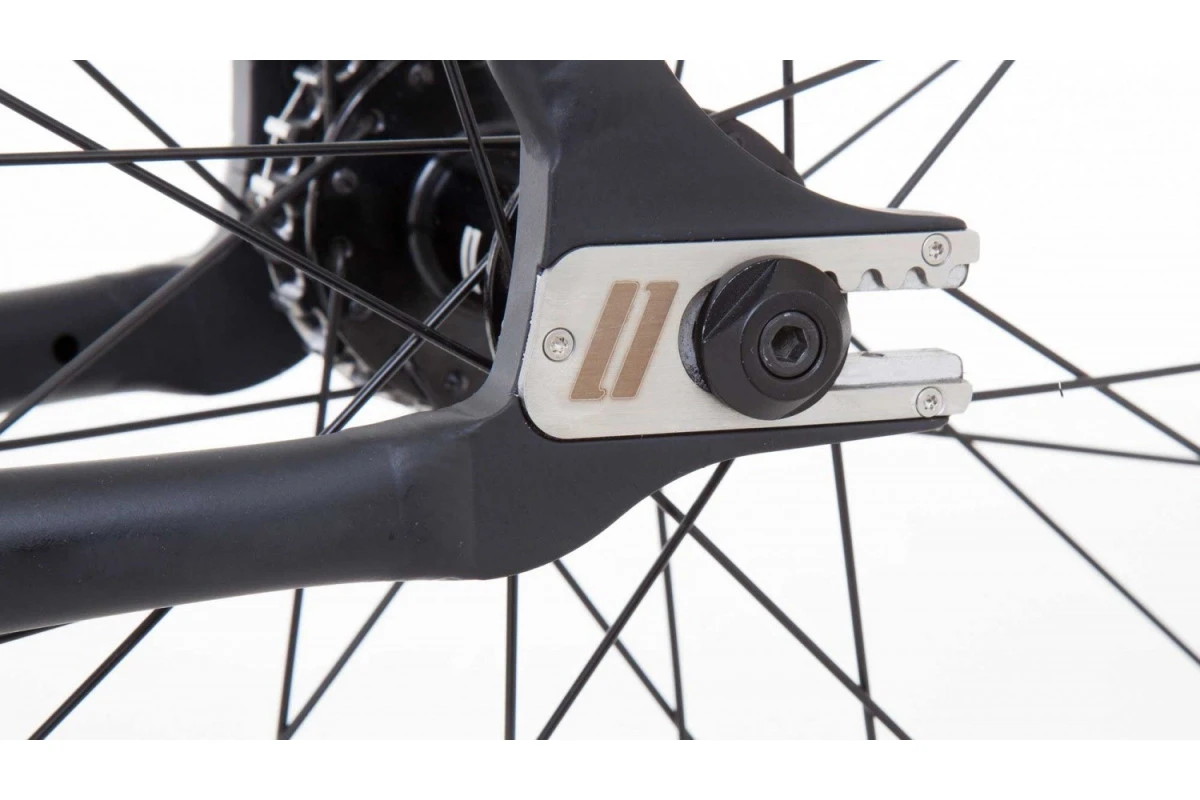 - Cadre: Aluminium (AL6061-T6), triple butted tube aéro, pattes horizontales avec système de tension crocodile, collier de serrage intégré, soudures lisses, pattes forgées afin d’éviter les soudures apparentes