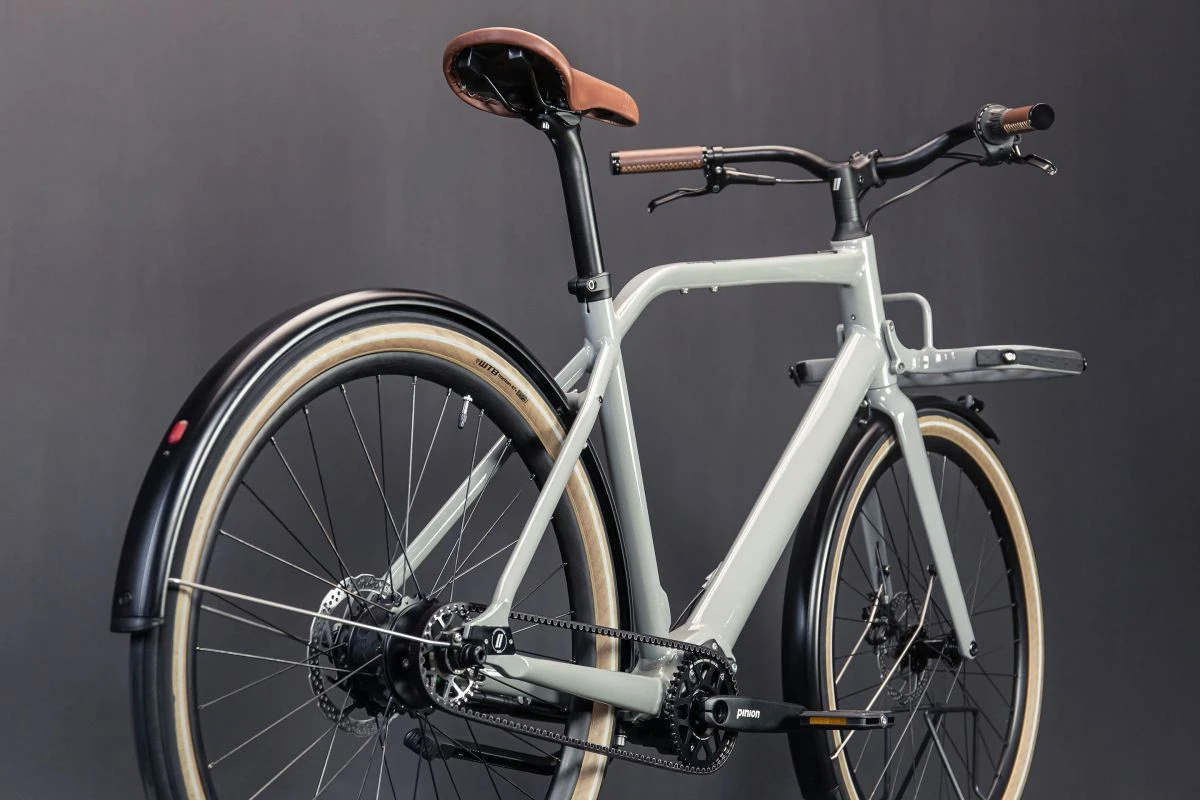 Il intègre un moteur électrique Mahle de 250 watts dans le moyeu arrière, une boîte de vitesse Pinion (créée par d’anciens ingénieurs Porsche) au niveau du pédalier et la batterie intégrée dans le tube oblique. Le tout bien évidemment avec discrétion et sobriété.