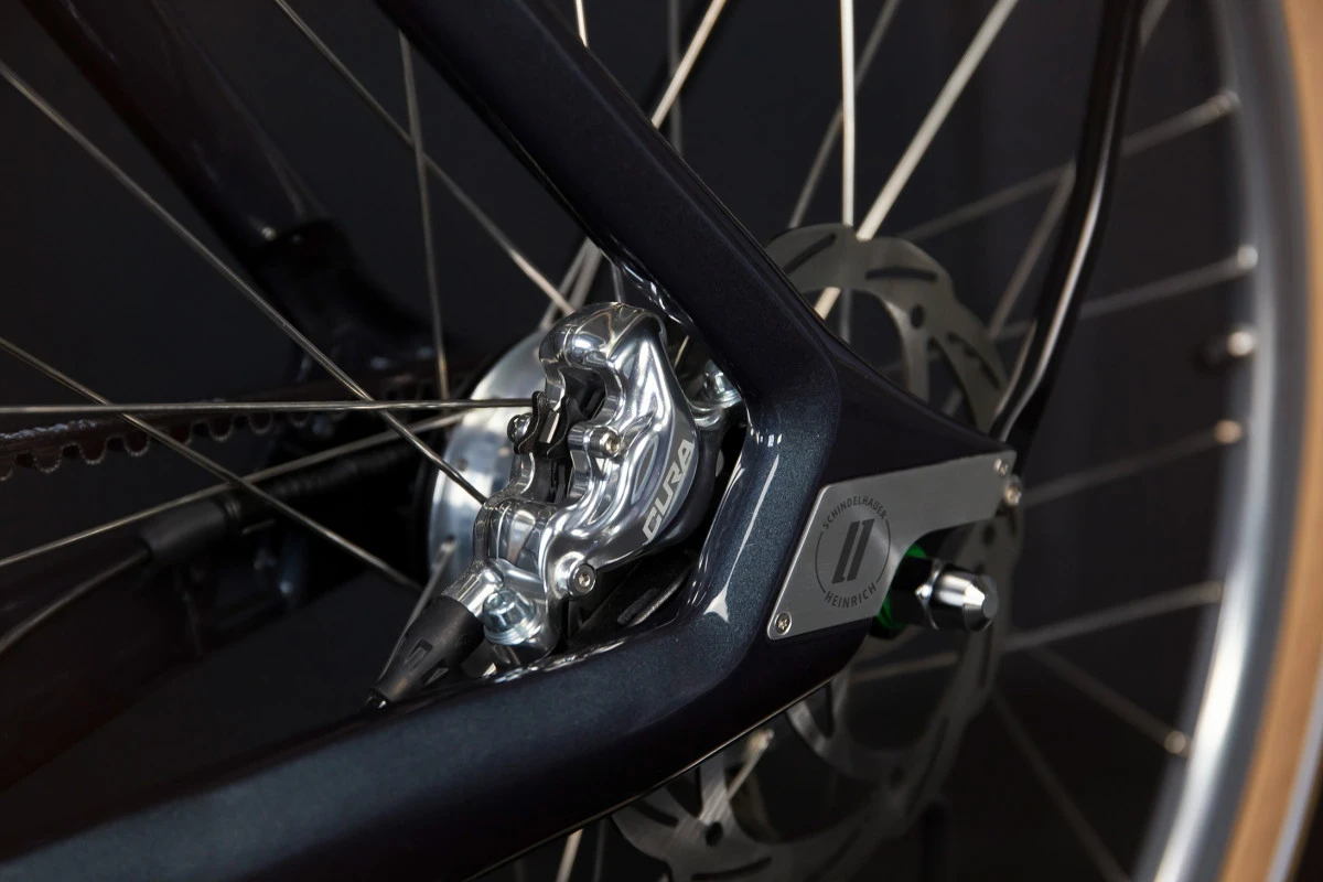 La présence de la courroie assure une transmission de la puissance de pédalage souple et silencieuse ainsi qu’un entretien des plus limités. Par ailleurs, du fait de son faible poids et de sa géométrie sportive, le Schindelhauer Heinrich peut être tout à fait utilisé avec l’assistance coupée.